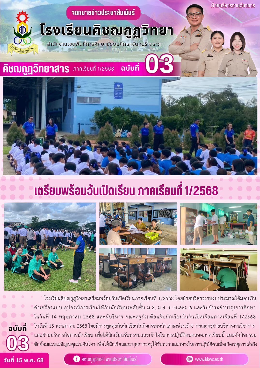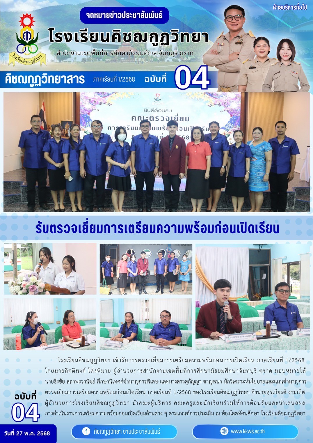 โรงเรียนคิชฌกูฏวิทยา เข้ารับการตรวจเยี่ยมการเตรียมความพร้มก่อนการเปิดเรียน ภาคเรียนที่ 1/2568