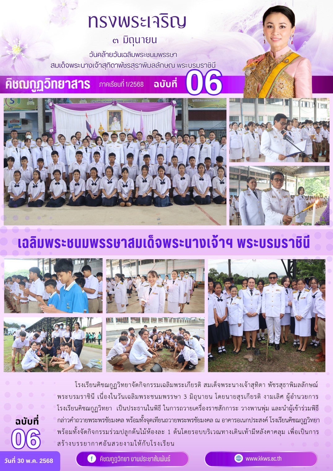 เนื่องในวันเฉลิมพระชนมพรรษา 3 มิถุนายน โดยนายสุรเกียรติ งามเลิศ ผู้อำนวยการโรงเรียนคิชฌกูฏวิทยา เป็นประธานในพิธี