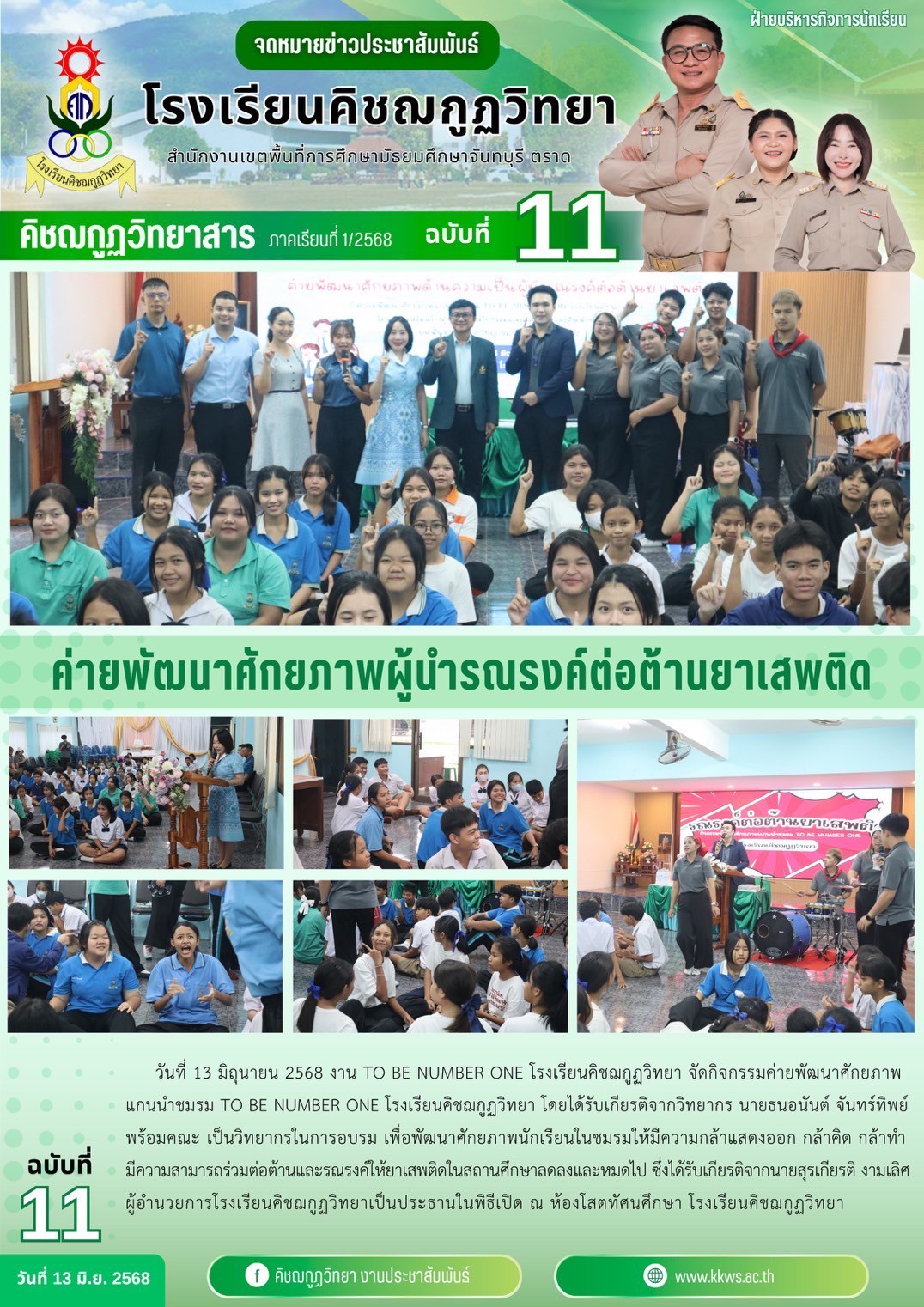 โรงเรียนคิชฌกูฏนำคณะครูและนักเรียนเข้าร่วมเดินขบวนรณรงค์ต่อต้านยาเสพติด