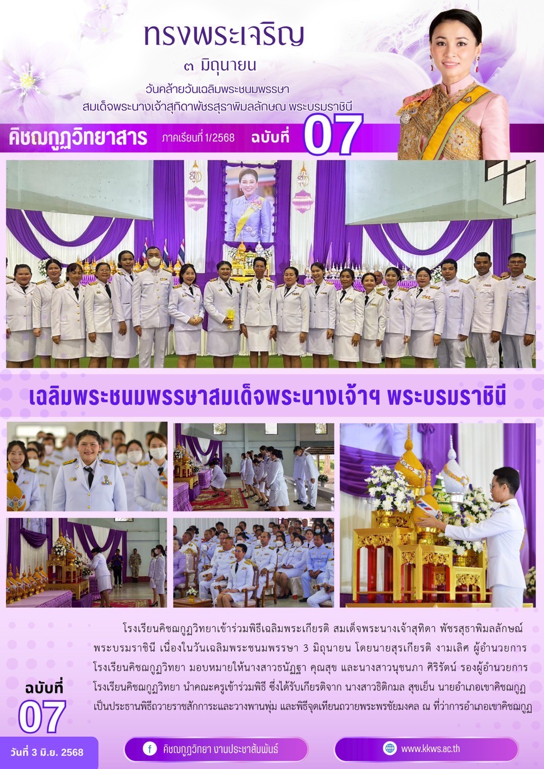 ๓ มิถุนายน วันคล้ายวันเฉลิมพระชนมพรรษาสมเด็จพระนางเจ้าสุทิดาพัชรสุธาพิมลลักษณ พระบรมราชินี